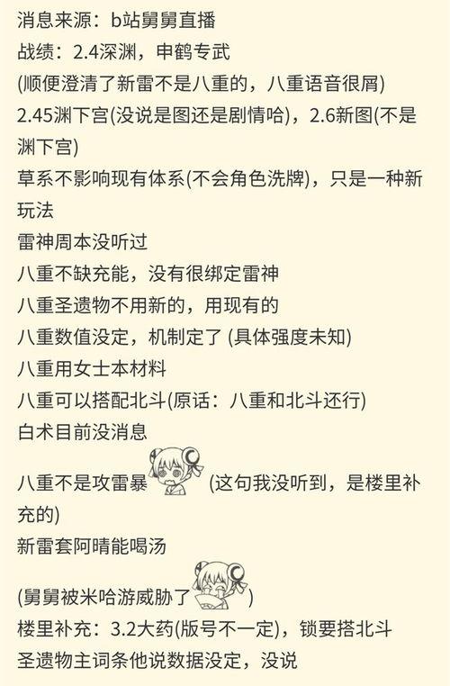 原神3.2版本的爆料图解让我们对即将到来的新版本充满了期待。无论是新角色、新武器,还是新地图、新活动,都让人跃跃欲试。让我们一起期待3.2版本的正式上线,开启全新的冒险之旅吧!